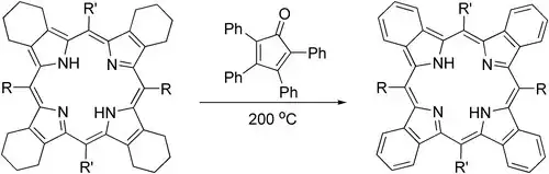 Tetraphenylcyclopentadienone can provide an effective alternative to DDQ in aromatization of porphyrins:[8]