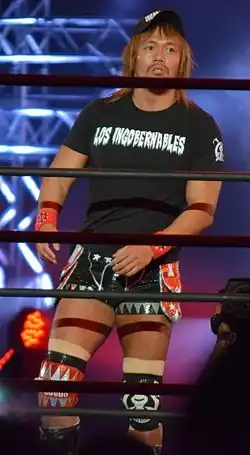 On January 4, 2016, at Wrestle Kingdom 10, Naito was defeated by Goto, with whom Los Ingobernables de Japón had been feuding since the previous October.[95] Naito avenged the loss on March 12 by defeating Goto in the finals to win the 2016 New Japan Cup.[96] On April 10 at Invasion Attack 2016, Naito defeated Kazuchika Okada with help from his Los Ingobernables de Japón stablemates Bushi, Evil and the debuting Sanada to win the IWGP Heavyweight Championship for the first time.[97] Naito made his first successful title defense on May 3 at Wrestling Dontaku 2016 against Tomohiro Ishii.[98] On June 19 at Dominion 6.19 in Osaka-jo Hall, Naito lost the IWGP Heavyweight Championship back to Kazuchika Okada.[99] From July 22 to August 13, Naito took part in the 2016 G1 Climax, where he finished second in his block with a record of six wins and three losses.[100] Naito finished tied with block winner Kenny Omega on points, but failed to advance to the finals due to losing to Omega in their head-to-head match on the final day.[101] On September 25 at Destruction in Kobe, Naito defeated Michael Elgin to win the IWGP Intercontinental Championship for the first time.[102] He made his first successful title defense on November 5 at Power Struggle against Jay Lethal.[103] Naito then took part in the 2016 World Tag League, where he and Los Ingobernables member Rush finished with a record of four wins and three losses, failing to advance to the finals due to losing to block winners Tama Tonga and Tanga Loa in their final round-robin match.[104]