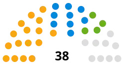 Since the last full review of boundaries in 2019 the council has comprised 38 councillors representing 20 wards, with each ward electing one, two or three councillors. Elections are held every four years.[32]
