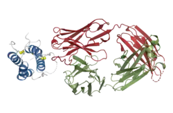 - ^ a b Verstraete K, Peelman F, Braun H, Lopez J, Van Rompaey D, Dansercoer A, et al. (April 2017). "Structure and antagonism of the receptor complex mediated by human TSLP in allergy and asthma". Nature Communications. 8 (1) 14937. Bibcode:2017NatCo...814937V. doi:10.1038/ncomms14937. PMC 5382266. PMID 28368013.