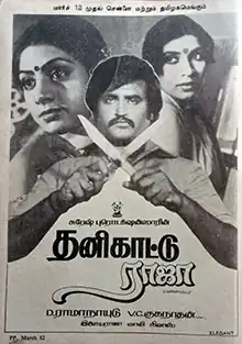 Thanikattu Raja (transl. The Lone Forest King) is a 1982 Indian Tamil-language action film written and directed by V. C. Guhanathan, and Produced by D. Ramanaidu.[1] It stars Rajinikanth, Sridevi and Sripriya, with Jaishankar, Vijayakumar, Sathyakala and Y. G. Mahendran in supporting roles.[2] The film had music by Ilaiyaraaja and cinematography handled by P. S. Nivas.