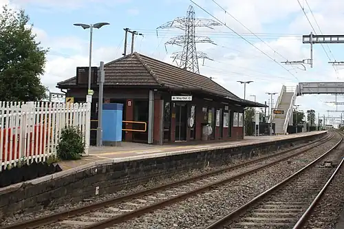 On the up platform is a ticket office that is open Mondays to Saturdays and two access points to the station car park. On the north side of the line west of the station is a Royal Mail sorting office next to where the ordnance depot used to be.