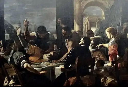 The Banquet of Absalom (Italian: Convito di Assalonne) is an oil on canvas painting by Mattia Preti, created in c. 1660–1665, now in the Museo nazionale di Capodimonte in Naples.[1] It illustrates a passage from chapters 13 and 14 of 2 Samuel in the Old Testament, in which King David's son Absalom avenges the rape of Absalom's sister Tamar two years earlier by inviting her rapist Amnon to a feast, getting him drunk and then killing him.[2]