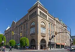 Opening in 1989, the mall was the first large shopping mall in downtown Victoria. It occupies two city blocks of the Old Town area, including the site of the original downtown Eaton's store[4] (previously Spencer's) at 1150 Douglas Street.[5] Eaton's was demolished in 1987–88 to make way for the Eaton Centre project. The development of the shopping centre was initially the subject of controversy,[4][6] as construction involved demolishing several historic buildings (or reducing them to facades in front of new construction)[6] and closing one block of Broad Street.[2]
