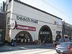The former Beach Theatre, presently Beach Mall. A long-standing issue in the community has been the area's name, whether its proper name is "the Beach" or "the Beaches".