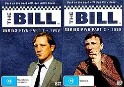 The fifth series of The Bill, a British television drama, consisted of 104 episodes, broadcast between 3 January and 28 December 1989. The series was first released on DVD as part of the Collection 3 and Collection 4 DVD boxsets in Australia, made available on 8 August – 7 November 2007, respectively. The first four episodes of the series were later issued on DVD in the United Kingdom, under the title Volume 4, on 15 March 2010. The next thirteen episodes of series 5 were released on DVD in the UK, under the title Volume 5, on 11 July 2011, the next 48 episodes of Series five were released on DVD in the UK under the title Volume 6, on 15 October 2012 and the remaining episodes were released on DVD in the UK under the title Volume 7, on 2 September 2013. The series was later reissued as two half-series boxsets in Australia, released on 7 March 2012. The above DVD artwork is taken from the most recent Australian release. It features images of DC Jim Carver and Sgt. Bob Cryer. The British volume artwork features a collage image featuring a variety of characters from across the season. The original Collection boxsets contained sole images of PC Pete Ramsey and PC June Ackland, respectively.