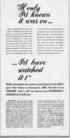- ^ "Rex Rienits' "Bodgie" Telecast". Sydney Morning Herald. 13 August 1959. p. 10.