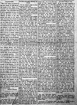 The Broad Ax (1895–1931) was a weekly newspaper that began publication on August 31, 1895, originally in Salt Lake City by Julius F. Taylor. After a series of conflicts with the Latter Day Saints, Taylor relocated the newspaper to Chicago in 1899.[1][2] The Broad Ax has been described as "the most controversial black newspaper in Chicago in the late nineteenth century," in some ways due to its criticism of Booker T. Washington[3] and Tuskegee Institute. The paper covered African American cinema.[4]