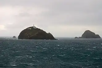 The first call for a lighthouse on the Brothers was in 1851 after the Maria sank near Cape Terawhiti.[8] When a lighthouse was erected on Mana Island to serve Cook Strait comment was made in the Marlborough Press that despite the expense it would have been better to have put one on the Brothers.[9] This request was again repeated in the Evening Post in 1870.[10] In 1867 SS Queen sank after hitting Cook's Rock, just to the north of the Brothers;[11] Cook's Rock was lit by a red light once the lighthouse opened.[12] In 1872 the barque City of Newcastle was lost because the Captain mistook the Mana Island light for the entrance to Wellington Harbour.[13] In 1874 a report titled New Zealand Coast Lights by Captain Johnson was tabled in Parliament and, among others, recommended removing the Mana Island light in favour of a light on the Brothers.[14][15]