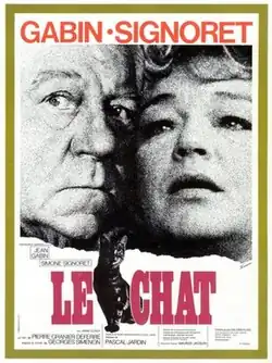 Le Chat ([lə ʃa], "The Cat") is a 1971 French-language drama film directed by Pierre Granier-Deferre and based on Georges Simenon's 1967 novel The Cat.[2] It recounts the story of an elderly married couple, Julien Bouin, a former typographist, and his wife Clemence, who used to perform in a circus, who have been loathing each other for years. They hardly talk to each other in their small house, soon to be demolished. Their only form of communication being occasional notes on scraps of paper. A stray cat being the only one he still gives affection to, the cat becomes the object of Clemence's anger. However, they are soon to understand that they cannot live without each other. The storyline of The Cat is speculated to have originated from Georges Simenon's difficult relationship with his mother.