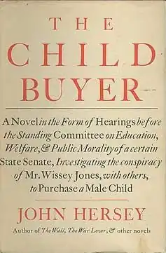 The Child Buyer is John Hersey's 1960 novel about a project to engineer super-intelligent persons for a project whose aim is never definitely stated. Told entirely in the form of minutes from a State Senate Standing Committee, it relates the story of the appearance and efforts of a mysterious stranger in the small town of Pequot, and the repercussions of his attempt to buy a boy, Barry Rudd.[1]