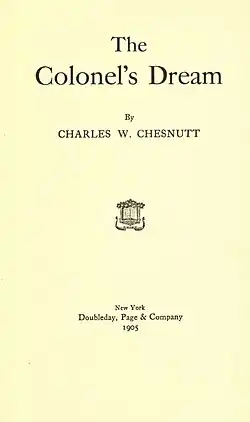 The Colonel's Dream is a novel written by the African-American author Charles W. Chesnutt. The novel is published by Doubleday, Page, & Co. in 1905. The Colonel's Dream portrays the continuing oppression and racial violence prominent in the Southern United States after the American Civil War.