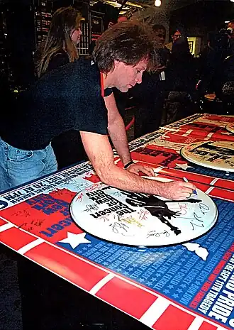 ![]() Jon Bon Jovi signing drumhead | |