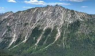 The Alpine Lakes Wilderness features some of the most rugged topography in the Cascade Range with craggy peaks and ridges, deep glacial valleys, and granite walls spotted with over 700 mountain lakes.[5] Geological events occurring many years ago created the diverse topography and drastic elevation changes over the Cascade Range leading to the various climate differences.