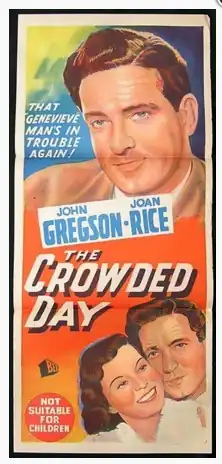 The Crowded Day (also known as Tomorrow Is Sunday; U.S.A. title: Shop Spoiled) is a 1954 British comedy drama film directed by John Guillermin and starring John Gregson, Joan Rice, Cyril Raymond and Josephine Griffin.[1] The screenplay was by Talbot Rothwell based on a story by John Paddy Carstairs and Moie Charles. The film follows a group of shopgirls working in Bunting and Hobbs, a London department store, during the Christmas shopping season.[2][3] It was an attempt by Adelphi Films to move into bigger budgeted films. It was the last movie Guillermin directed for the company.[4]