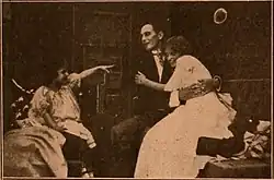 The writer of the scenario is unknown, but it was most likely Lloyd Lonergan. He was an experienced newspaperman employed by The New York Evening World while writing scripts for the Thanhouser productions.[2] According to an advertisement for the film, the plot was written especially for Marie Eline, also known as the Thanhouser Kid, as a feature which would show her abilities.[1] Eline's role and actions were described in a deus ex machina fashion by The New York Dramatic Mirror reviewer because of her actions to guide and assist her blind sister.[1] Though, Lonergan liked to use the dramatic technique in the conclusion of the plots, it was not like the usage in The Actor's Children.[3] It is also not the most striking example of the technique, in The Restoration the runaway child picks a doorstep to rest upon in a city, at complete random, is taken in by a recently engaged wealthy woman and reunited with her amnesia-struck father.[4] The film director is unknown, but it may have been Barry O'Neil. Film historian Q. David Bowers does not attribute a cameraman for this production, but at least two possible candidates exist. Blair Smith was the first cameraman of the Thanhouser company, but he was soon joined by Carl Louis Gregory who had years of experience as a still and motion picture photographer. The role of the cameraman was uncredited in 1910 productions.[5] Cast in the starring role is Marie Eline as the little girl.[1] A surviving film still gives the possibility of identifying two more actors in the production. The other credits amongst the cast are unknown, but most of the credits are fragmentary for 1910 Thanhouser productions.[6]