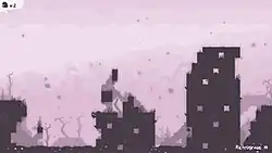 The End Is Nigh began development as the product of a game jam between Edmund McMillen and Tyler Glaiel in December 2016.[1] The game was built upon an engine created by Glaiel in 2010 that allowed for assets created in Adobe Flash to be imported expediently.[6][7] After a year of developing a platforming shooter game called Øuroboros, McMillen and Glaiel decided to refocus the concept, as little progress had been made on the game. While developing Øuroboros, they took small breaks to prototype other ideas and, in December 2016, both committed to do a full game jam to explore these concepts. Within the first week, they had developed a platformer with open-world and adventure game elements. McMillen described it as feeling "a bit like VVVVVV meets 1001 Spikes with a Spelunky control setup and it felt perfect".[1] They continued to work on the game in secret for the next few months, and it was officially revealed and announced on June 7, 2017, about a month before its planned release date.[8] McMillen announced the game shortly before its release, wanting to avoid the game becoming vaporware, as had been the case for some of his previously announced titles like Mewgenics and Super Meat Boy Forever (until it was taken over by another team and released in 2020[9]). Of the completed game, McMillen said that The End Is Nigh is the largest game, level-wise, that he had worked on, and embodies aspects of every game that he had created. The game has voice acting by Rich Evans of RedLetterMedia and its music was composed by Ridiculon.[1][10]