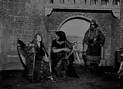 The first performance of the play was given by the Hardy Players, an amateur troupe in Dorchester, and was intended to star their leading actress, Gertrude Bugler, though her pregnancy prevented this.[9] Hardy himself was closely involved in the production, as was Harley Granville-Barker, an eminent theatrical figure to whom Hardy sent an early copy of the script and who responded with appreciative criticism of the play itself and of the approach to it of the Hardy Players, one of whose rehearsals he attended.[10] The play was performed at the Corn Exchange in Dorchester on 28, 29 and 30 November 1923, and the Hardy Players then took the production to London to be played at King George's Hall on 21 February the following year. It was also performed in Bournemouth on 25 April 1924.[11][12] Reviews noted the difficulties presented to amateur actors by the play's archaic style,[13] The Daily Telegraph noting that "The Hardy Players did their best, but they succeeded not at all in geting down into the depths of passion which...this play might reveal in the hands of a fine professional company under a producer of mark."[14] Even Hardy's wife Florence could only claim that these had been "more or less overcome", while admitting that the Hardy Players were better in rustic comedies.[11] There was also a private performance by the students of the Royal Academy of Dramatic Art on 1 April 1924.[15] There have since been very few productions, though the play was notably performed on BBC radio on 28 February 1956 (repeated the following April), with Mary Morris as Queen Iseult, Rachel Gurney as Iseult the Whitehanded, and incidental music by Norman Demuth.[13]