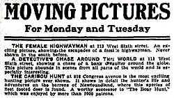- ^ "Films For Rent or For Sale" (including "910 The Female Highwayman...27.00"), The New York Clipper, October 19, 1907, p. 975. Internet Archive. Retrieved July 11, 2020.