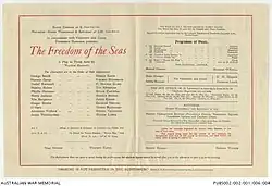 The Freedom of the Seas is a 1918 British comedy play by Walter Hackett. A downtrodden London clerk joins the Royal Navy during the First World War. Given command of a tramp steamer he rises to the occasion and thwarts the plans of a German spy.[1] It appeared at the Royalty Theatre before transferring to the Theatre Royal, Haymarket where the cast included Dennis Eadie, Billie Carleton, Tom Reynolds, Marion Lorne, Randle Ayrton, Sydney Valentine and James Carew.