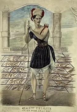 John Thomas Haines authored the pantomime titled The French Spy in the early 1830s, a military drama reflecting the French occupation of Algiers, created for Madame Céleste. Written in 1831, the script required Mme. Céleste to play a travesti role and portray multiple characters. Haines' 20-page stage direction script was notably elaborated upon by Celeste.[2] Madame Céleste had once performed The French Spy 200 times in one year.[3]