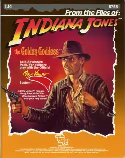 In 1984, TSR gained the license to make a role-playing game based on Indiana Jones,[3] and released The Adventures of Indiana Jones Role-Playing Game the same year. Over the next two years, TSR supported the game with six adventures, the fourth one being IJ4 The Golden Goddess, a 16-page softcover book with a map, viewer film, cardstock miniatures, and two outer folders written by Ed Carmien, with interior art by Jeff Easley, Jayne Hoffmann, Dennis Kauth, and Marsha Kauth, and cover art by Clyde Caldwell.[4]