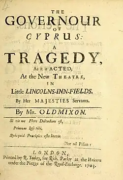 ![]() Title page of The Governour of Cyprus (1703) | |