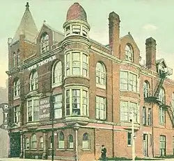 S. J. Moore, chairman of the West End Y.M.C.A., laid the cornerstone for the building on November 13, 1889, and the construction completed in less than a year. The building was dedicated on October 9, 1890,[3][4] and served as a gymnasium featuring a bowling alley, running track and library on the lower level with the main assembly hall on the upper level.[8] The gymnasium is said to be the location of some of the earliest games of basketball.[9] It was also a training facility used by Tom Longboat, a Onondaga runner who later won the 1907 Boston Marathon and competed in the marathon at the 1908 Summer Olympics.[10]