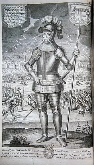 The Battle of Crécy of 1346 was a complete disaster for the French, largely credited to the English longbowmen and the French king, who allowed his army to attack before it was ready.[28] Philip appealed to his Scottish allies to help with a diversionary attack on England. King David II of Scotland responded by invading northern England, but his army was defeated, and he was captured at the Battle of Neville's Cross on 17 October 1346. This greatly reduced the threat from Scotland.[26][29]