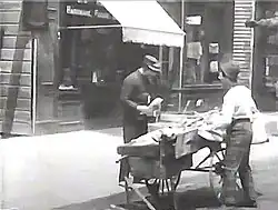 ![]() Film frame of the "Messenger" (left) just before he makes the "Fruit vendor" disappear | |