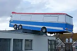 As part of a celebration of British culture at 2012 Summer Olympics, which were held in London, a replica of the bus was made and was exhibited balanced on the edge of the roof of The De La Warr Pavilion in Bexhill-on-Sea.[41][42] The dialogue and car blowing up scene were shown at the closing ceremony.[43]