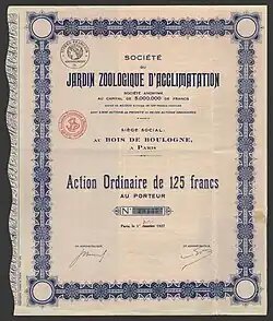 Opened on 6 October 1860 by Napoléon III and Empress Eugénie, this Paris zoo was originally known as Jardin Zoologique d'Acclimatation, where plants and animals from the colonies could acclimatise to France's weather conditions.[2] It was directed by Isidore Geoffroy Saint-Hilaire, son of the naturalist Étienne Geoffroy Saint-Hilaire, until his death in 1861.