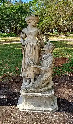 John and Mable Ringling are both buried near the rose garden, in a section known as the Secret Garden. The rose garden is surrounded by stone statues arranged in pairs, depicting figures in Italian peasant clothing engaged in scenes of courtship.