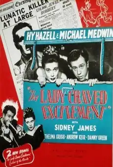 The Lady Craved Excitement is a 1950 British comedy second feature ('B')[2] film directed by Francis Searle and starring Hy Hazell, Michael Medwin and Sid James.[3][4][5] It was written by John Gilling based on the 1949 BBC radio serial The Lady Craved Excitement by Edward J. Mason.[6] An early Hammer film, it is significant as one of five films shot at Oakley Court and the first to feature its famous exterior, located next door to Bray Studios.[7] Filming took place from Feb. 28, 1950 through March 31st. It was trade shown on July 27, 1950, and released in September.[8]