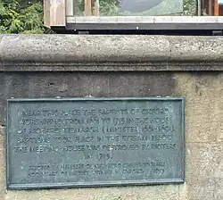 Inscription commemorating the 300 year anniversary of the Baptist community in Oxford on the former site of a Baptist meeting house destroyed in 1715. The balcony of the Lighthouse pub can be seen in the background.