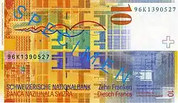 Back side of the Swiss 10 CHF banknote, showing the Modulor