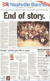 - ^ a b c "Nashville Banner prints its own true 'final edition'". The Jackson Sun. Jackson, Tennessee. February 21, 1998. p. 6. Retrieved November 4, 2017 – via Newspapers.com.