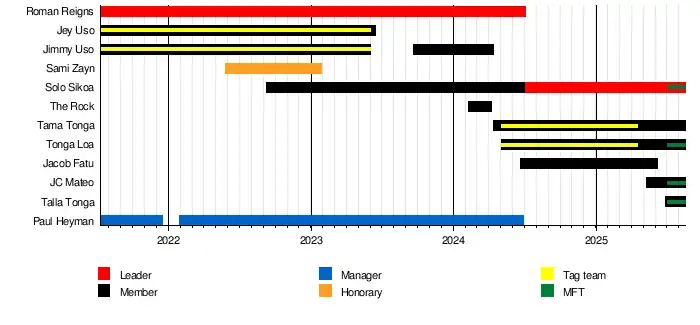 | Billed heights | Solo Sikoa: 6 ft 2 in (1.88 m) Tama Tonga: 6 ft 0 in (1.83 m) Tonga Loa: 6 ft 2 in (1.88 m) JC Mateo: 5 ft 10 in (1.78 m) Talla Tonga: 6 ft 8 in (2.03 m) |