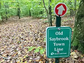 ![]() Boundary sign between Old Saybrook and Essex in "The Preserve". | |