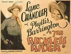 The Reckless Rider is a 1932 American western film directed by Armand Schaefer and starring Lane Chandler, Phyllis Barrington and Neal Hart.[1] It was a loose remake of the 1928 FBO Pictures film When the Law Rides also written by Oliver Drake.