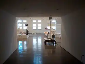 The Renaissance Society inaugurated the 21st century with Thomas Hirschhorn: World Airport. In 2004, Laura Letinsky: Hardly More Than Ever, Photographs 1997–2004 reinterpreted the traditional male gaze of still life paintings, using the ideas of domesticity and the camera lens to explore intimate, often overlooked moments.[8] In 2008, Black Is, Black Ain’t explored a shift in the rhetoric of race and identity, exhibiting 26 black and non-black artists. After 40 years as Executive Director and Chief Curator of the Renaissance Society, Ghez ended her tenure in 2013 her final show William Pope.L: Forlesen. Pope.L’s new installation explored the demarcation of differences politically, economically, socially, and culturally. This show underscored Ghez’s commitment to refocusing the Society around Schütze’s mission in becoming a laboratory for new art and ideas. Under her leadership the Renaissance Society developed an international distinction for its ground-breaking curatorial programming.