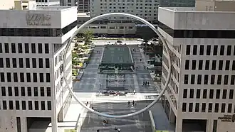 The Ring (French: L’Anneau) is a sculpture located at the Place Ville Marie in Montréal, Canada, designed by Claude Cormier + associes and erected in June 2022. The sculpture weighs around 23,000 kilograms (51,000 lb), spans 30 metres (98 ft) and cost over CA$5,000,000 of taxpayer and private money.[1] The sculpture is heated to prevent snow buildup, and has vibration dampers to prevent damage during high winds and earthquakes.[2]