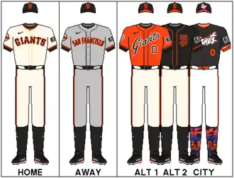 - ^ "San Francisco Giants Uniforms 1958 - Present". SFGiants.com. MLB Advanced Media. Archived from the original on October 24, 2019. Retrieved October 24, 2019.