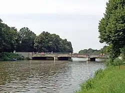 The Saxons' Bridge (Litt.: Sachsenbrücke) over the Elsterflutbett (the flood channel of the Elster) connects the eastern and western parts of Clara Zetkin Park (formerly King Albert Park) in Leipzig, Germany. Located southwest of the city center, it also provides a car-free connection for pedestrians and cyclists from the center to the western part of Leipzig via Anton-Bruckner-Allee. According to the data from the 2021/22 traffic count, the Saxons' Bridge has the highest traffic occupancy with over 15,000 cyclists per day in cycling in Leipzig.[1]