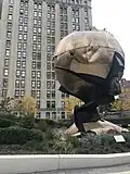 The Sphere (officially Große Kugelkaryatide N.Y., also known as Sphere at Plaza Fountain, WTC Sphere or Koenig Sphere) is a monumental cast bronze sculpture by German artist Fritz Koenig (1924–2017).[2]