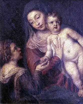 ![]() | ![]() | Titian's workshop, Madonna and Child with Saint Catherine of Alexandria | Central wall | Uffizi, Florence |