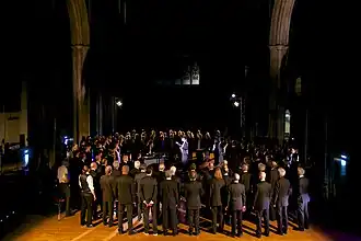 This piece was performed on 23 January 2016 in St. Andrews Hall, Norwich. It was the last show delivered as part of the 'Singing the City' programme, and it was a seated performance in a well-known Norwich building, which was used in an unusual way. It marked the turning of the year with choral music that took us from the dark of winter to the promise of spring, exploring the themes of dark and light, hibernation and awakening.[13][14][11]