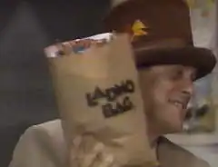 In the mid-1960s, the Ladmo Bag first appeared on the show. Prior to this, children who were winners of one of the many ongoing contests run by the program, were invited on the show to pick a prize from the "Toy Cottage". Often they would have a difficult time choosing which prize they wanted, leading to delays and slowing the pace of the show. Wallace credits Pat McMahon with coming up with the idea, of putting items from the show's sponsors in a bag, and giving that to the winner instead. The Ladmo Bag could also be won by children in the in-studio audience or at stage performances. They were paper grocery bags filled with candy, potato chips, cans of soda, assorted coupons and so on.[8][9]