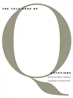 The Yale Book of Quotations is a quotations collection focusing on modern and American quotations. Edited by Fred R. Shapiro, it was published by Yale University Press in 2006 with a foreword by Joseph Epstein, ISBN 978-0-300-10798-2. Prior to publication it was referred to by its working title, The Yale Dictionary of Quotations. The book presents over 12,000 quotations on 1,067 pages. It is arranged alphabetically by author (or, for some quotations, by quotation type), with some information as to the source of each quotation and, where the editor deems this relevant, cross-references to other quotations. A keyword index allows the reader to generally find quotations by significant words in the quotations.