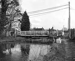 Before the 20th century,[37] Blossoms Lane ran to a hamlet called Blossoms End and ended at Blossomsend Farm, now a golf course. The road is now Crown Lane, leading to Blossom Lane. The High Street conservation area includes Crown Lane and lower Blossom Lane, protecting Victorian houses with polychrome brickwork. Station Road leads through the industrial and commercial area, under the 1971 bypass bridge to the railway station, then on to the swing bridge over the canal at the Sheffield Bridge conservation area. This contains Sheffield Mill, Sheffield Lock and a pillbox, all listed. This lock has unusual scalloped walls. Garston Lock, to the east is Grade II* listed because it is a very rare turf-sided lock. The parish boundary is at the bridge, although the Fox and Hounds pub at Sheffield Bottom further on has a Theale postal address. The smallest listed building in Theale is on the A340 just south of the Bradfield Road crossroads. It is an 18th-century milestone in the form of a short column, reading "TO BASINGSTOKE 15; TO WALLINGFORD 13; TO OXFORD 26".[38]